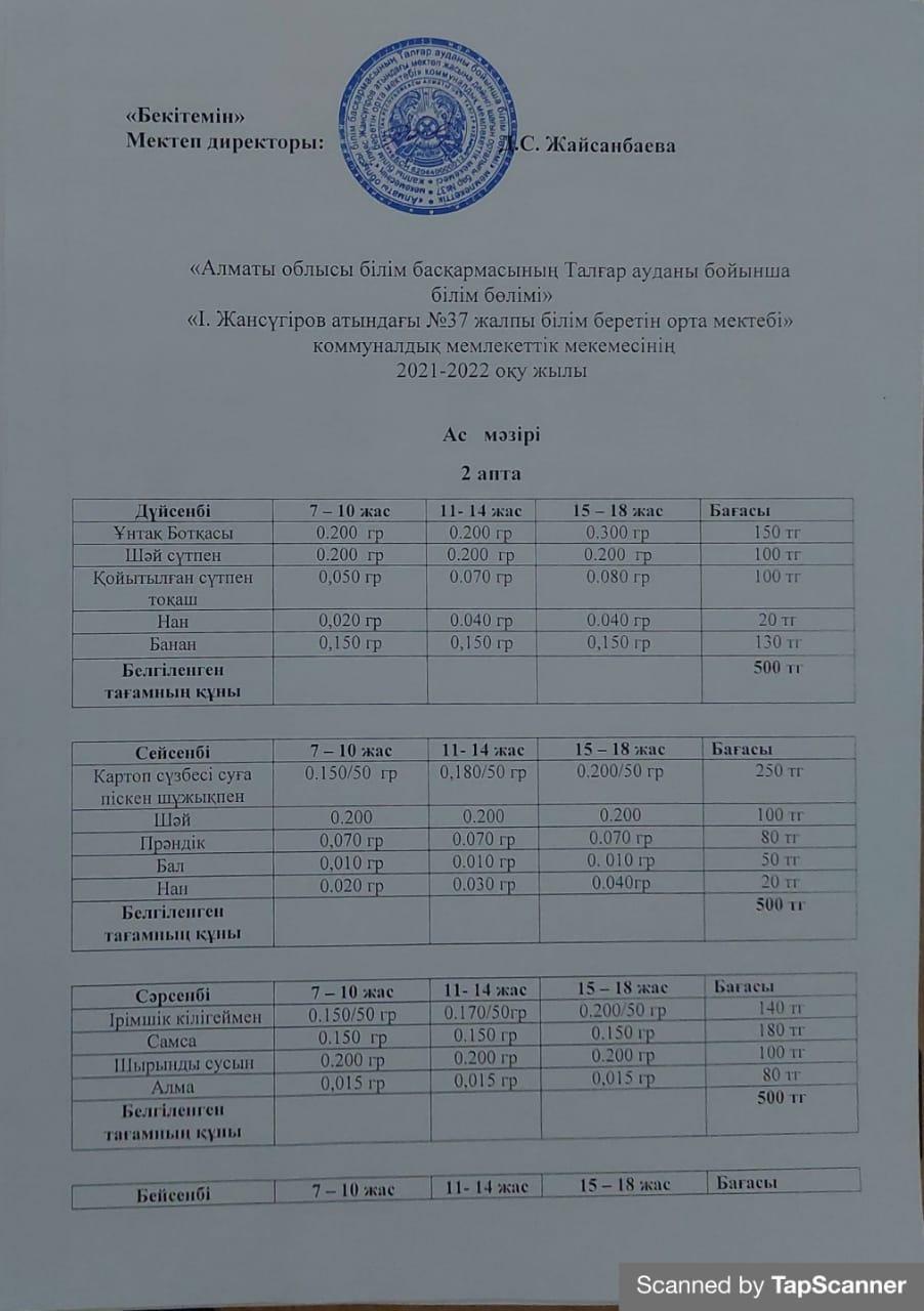 Ас мәзірі » "Ілияс Жансүгіров атындағы №37 жалпы білім беретін орта мектебі"